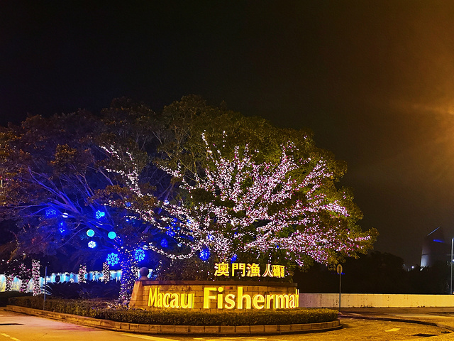 回到关闸,寻找通往酒店的“发财车”,一辆绿色装饰,写着“澳门渔人码头”的小巴车正停在写有酒店名字的遮阳伞前面,才知道我们今晚住的酒店就在渔人码头里面。