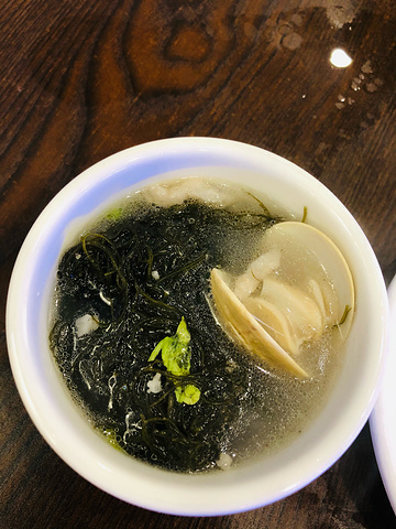 龙须菜白贝汤,很大一盆,龙须菜是新鲜的,点菜以后老板直接从水箱里铲出来拿到后厨做的。