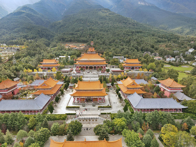 绕过三塔,沿着中轴线往里走,沿路可在文物陈列馆看维修三塔的过程中发掘出土的南诏、大理国文物,在钟楼看重达16吨的南诏建极大钟,在雨铜观音殿看雨铜观音,最后便可来到崇圣寺。