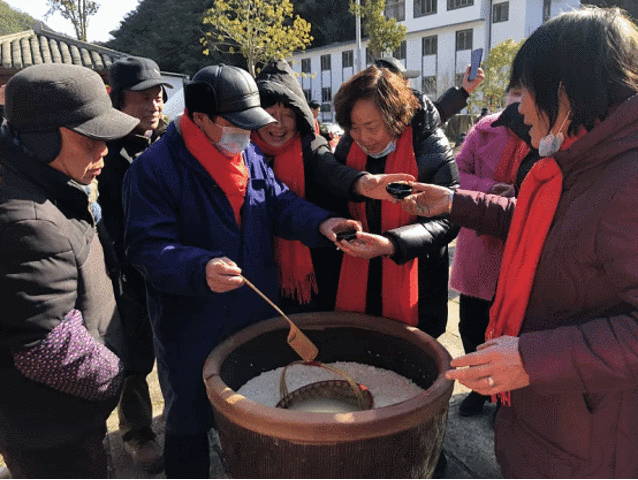 石门老街的羊耳朵、打年糕、油燉果等几十种老底子的年俗活动和冬笋、杜公豆腐、高山小香薯等当地的农副产品市集,成为游客挤堆的地方,还激起了现场购买兴致。