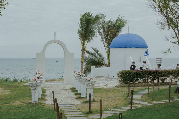 小 东海 这里是婚纱摄影基地非常适合拍照,海水特别好看特别干净特别蓝,这里有 希腊 圣托里尼 的蓝顶房子,这里每一处都是精心布置过的,热带的茅草屋,十分具有浪漫 东南亚 的热带风情,陈旧的老电视,美丽的吧台,都是拍照的好场景。
