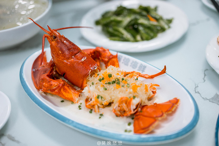 蒜蓉龙虾开边蒸,龙虾一上桌就引得口水直流呀,因为色泽鲜艳看起来超级有食欲,而吃起来真的不是一个好吃二字就可以囊括的,肥美的肉质吃起来紧实鲜甜,尤其虾钳里面一大块的肉,真的太赞了!