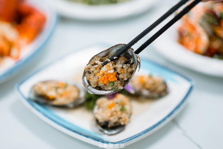 蒜蓉蒸鲍鱼,鲍鱼个头都很足,里面融合了蒜蓉的咸香,吃起来弹性十足,非常入味,这个做法比较少吃,所以是吃起来很惊艳的一道菜。