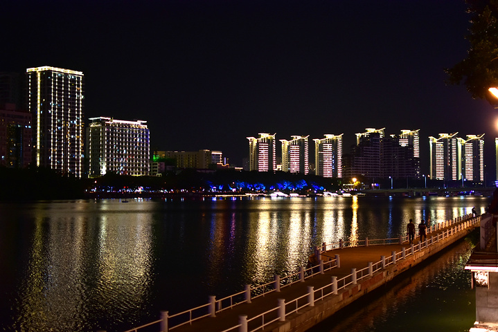 清风吹拂,微波荡漾,夜景美妙。