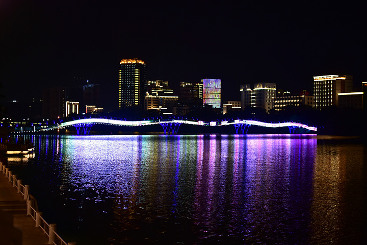 情人桥的夜晚,是一幅流动的彩虹画作