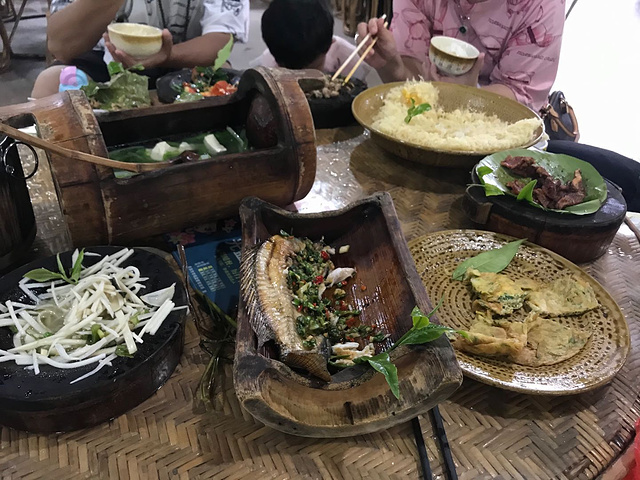 中午去风情园吃饭品尝基诺族风味餐大约一个半小时(人均30元左右餐费)