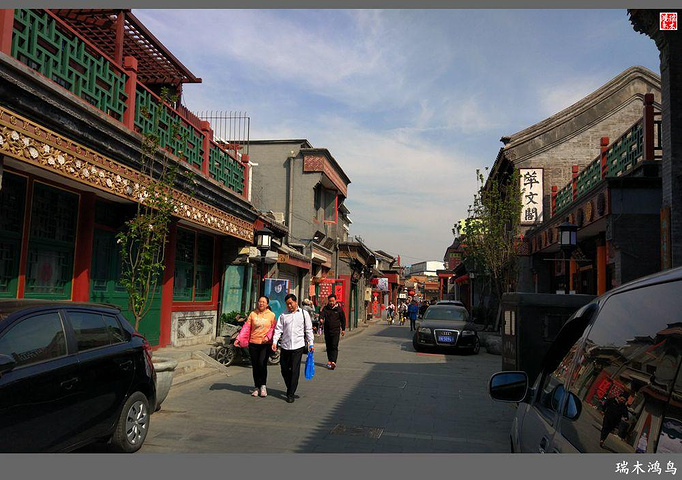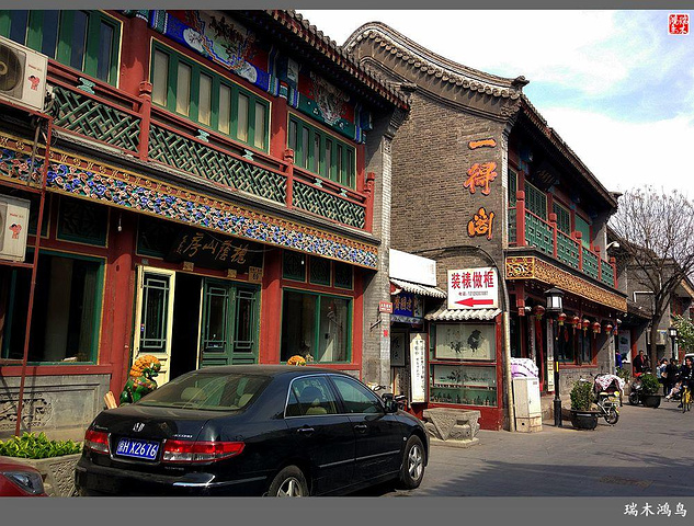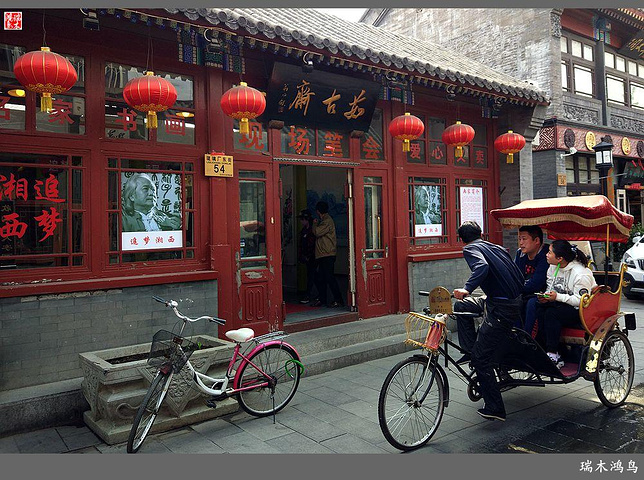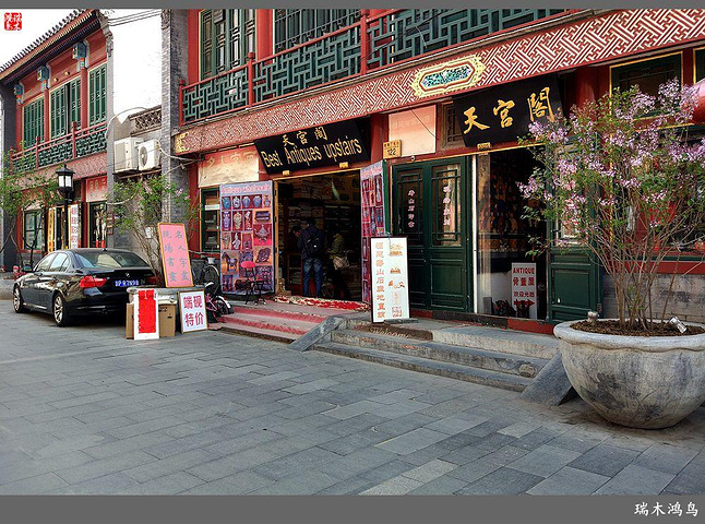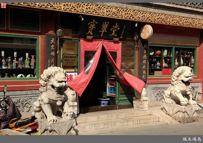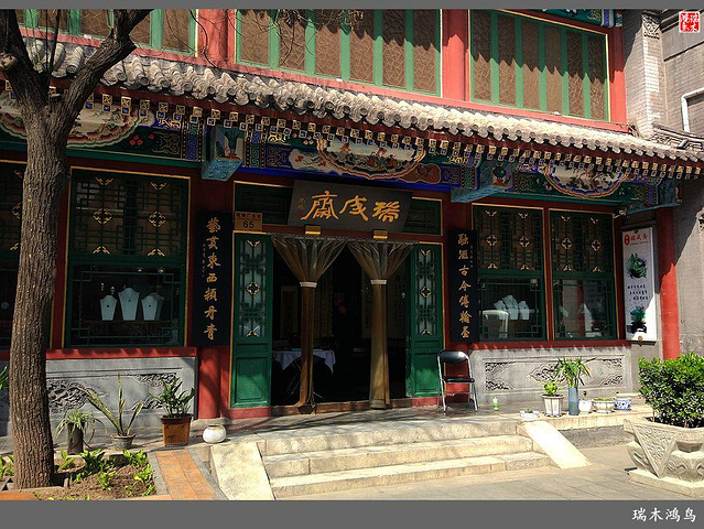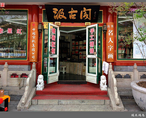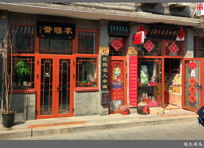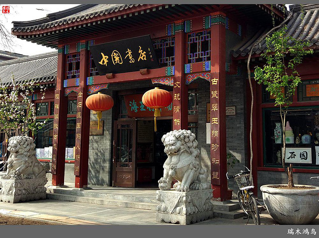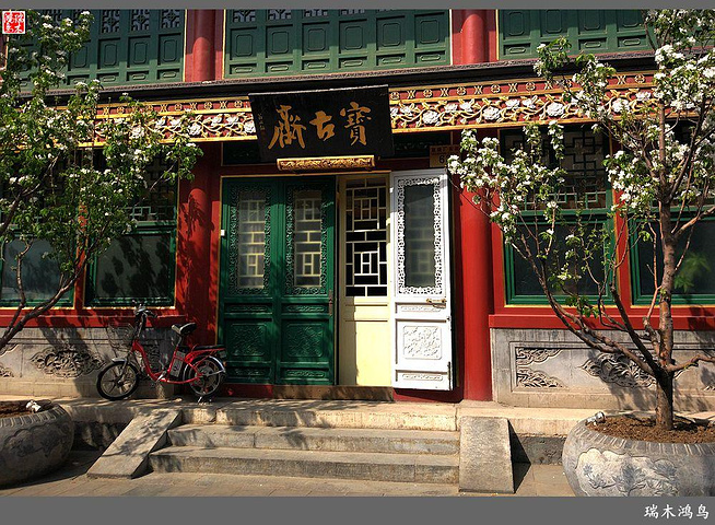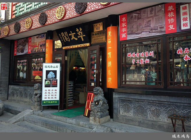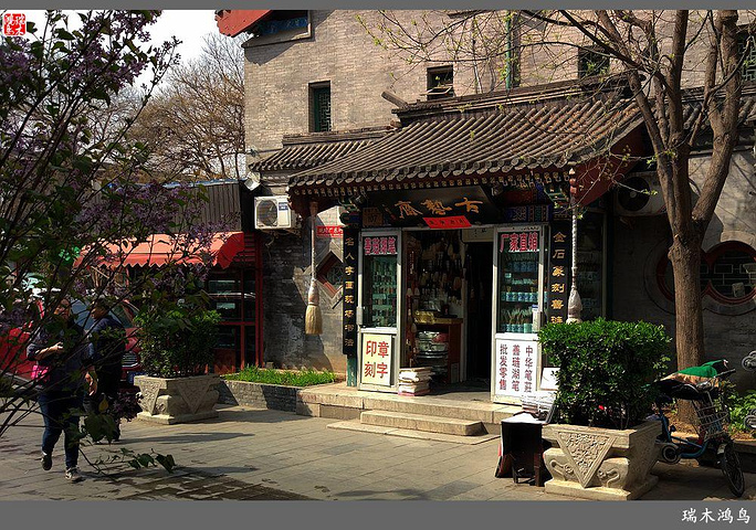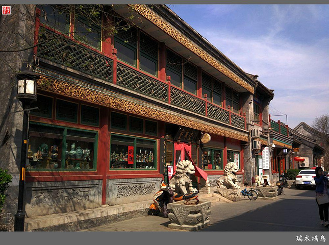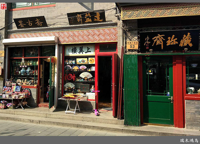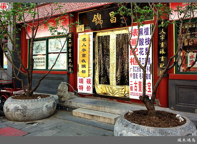 上世纪80年代,琉璃厂文化街整修重建,街道两旁,铺面店堂,青砖灰瓦,砖雕彩绘,看上去古色古香。东西琉璃厂大规模翻修时,还增加了一些新建筑。在东西琉璃厂两街之间的马路上,凌空架起一座汉白玉仿古石桥,又为古老的文化街平添一景。现如今的琉璃厂,两侧全新的仿古代建筑群丰采焕发,一座座高低起落,进出参差,富有情趣。东边以整齐的二层建筑为主,唯有路口“汲古阁”的造形别具一格。它分上中下三层,第二、三层皆有平台,台四周是一圈红漆扶栏。二层的平台没有建在正上方,却建立在一层的左上方;更有趣的是建筑师们在它上面别出心裁地建筑了一座白藤萝架。使整个建筑高大而又色彩鲜明。西边同样有两座主体建筑,分别建在路口的南北两侧,其中两侧道中的冲天牌楼尤为吸引人,牌楼顶的柱上套有红铜色的箍头,正面的木板上满是雕成的牡丹花,还有那展翅起飞的凤凰,下面的边缘则雕着松竹梅,再下面是一条狭窄的廊子。北侧的建筑饰以苏式彩画,绘上山水,也有《红楼梦》中的人物、古物,显得俏丽,明快。它上面饰有深红色底,衬托着金线图案或金线彩画。门窗都是对称的,两扇、四扇、八扇,也都镶有金边。在它的屋顶上也有个平台。这是专门经营孔府菜肴的孔府菜肴的“孔膳堂”。漫步在琉璃厂文化街,“荣宝斋”,“萃文阁”,“来熏阁”,“宝古斋”,“邃雅斋”,“文奎堂”,家家都是百年老店。 徜徉其间,也许能让人能嗅到到那古街的味道,看着古老的房舍屋檐,静静地感觉那时光的流逝。