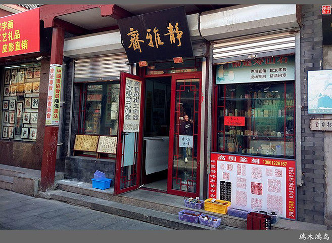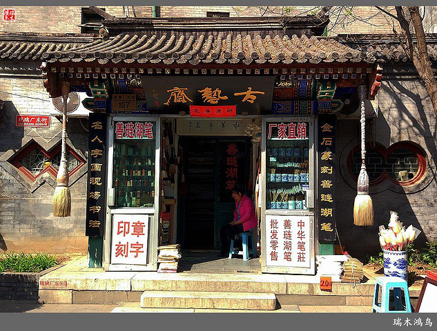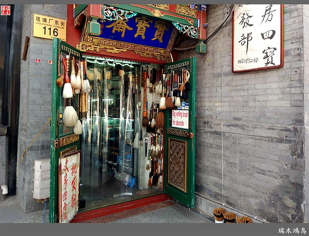 说起北京文化街—琉璃厂,每个老北京都有一种亲切感。琉璃厂位于北京和平门外南新华街南口附近,呈东西走向,街面狭长,约一里左右。元末明初,“琉璃厂”还只是个小小的海王村,官方看中了这块宝地,在此设官窑以烧制琉璃瓦而著称,以此得名“琉璃厂”迄今已有600多年的历史。到了清代,各地举人云集附近,此处渐渐有了出售书籍、古玩、字画的店铺和一些经营各种食物的摊子,这就是琉璃厂市集的由来。到了乾隆时期,琉璃厂的古玩、字画、古籍、碑帖及文房四宝的经营形成了气候,诸多文人墨客、文化商人常来光顾,聚在一起切磋技艺、相互学习、传承民族文化,留下了许多“万事莫如为善乐,百花争比读书香”等弘扬正气、积极向上、传递正能量的墨宝,鼓励人们读书受益,多做善事,和睦相处,和谐共事。琉璃厂留住了人们昔日的记忆,留下了一笔宝贵的精神财富。