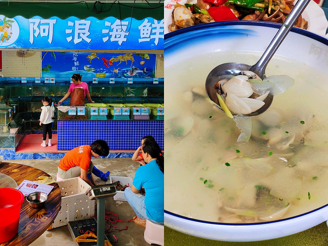 环境:住在海棠湾,酒店附近有很多海鲜大排档,朋友推荐了一个海南人开了20多年的老字号“阿浪海鲜”,店里店外都有座位区。