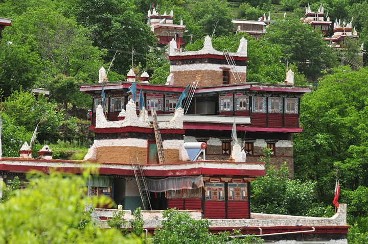 2018年5月12日下午2点30分到达甲居藏寨,先在公路旁的1号2号观景台停留,俯瞰整个藏寨全貌,然后入住曾阿热大叔接待站,这是此行住宿最差的一次,本来是民宿,条件就不好,加之要求只能住三人间,这样我们两对夫妇,一个单身,只能打乱入住。北京的夫妇不同意,理由是他们都打呼噜,不习惯与他人一起合住。领队与老板商量,最终同意我们两对夫妇各一三人间,才算安排妥当。放好行李,已是下午3点多,我们各自到藏寨游览参观。