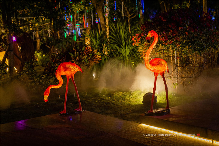 这是大悦洋在三亚湾海角院子新开的一家餐厅,整座餐厅露天开放,是非常小清新的用餐环境,虽然中午也开餐,但我还是推荐晚上去吃这顿饕餮盛宴,更凉快也更有情调,晚上院子外面的“小鹿”、“火烈鸟”点亮灯光,有那种热带雨林度假的味道了。