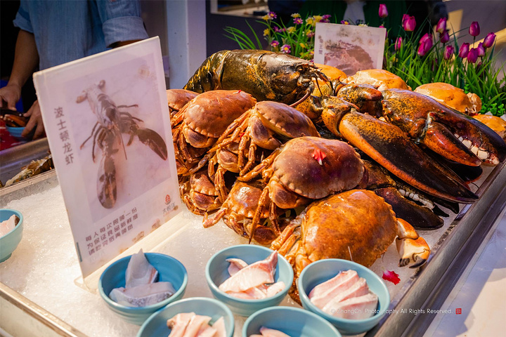 波士顿龙虾是大悦洋的王牌之一,分时段限量供应,供应时会有服务员提醒,每人每次只能取一份,这时你也可以抱着大龙虾一起合影。