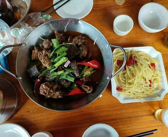 找了一家临江餐厅,就在江边虹桥旁,非常好找。依江看着美景品着美味,很是惬意,这是旅途中最满意,也是凤凰古城我最喜欢的一家了。今天的餐价格很实惠,是我们一路旅行中最可口的一餐。帅气的老板非常大气好客,服务很好,特别热情,还送了啤酒,在此感谢!