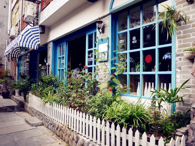 走累了,就随便找一家咖啡馆,东西好吃不好吃已经不重要,旅行的心情才是排在第一位。这家“默舍”靠着江边,颜色对比强烈的一角和露天小花园很适合拍照。