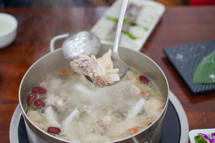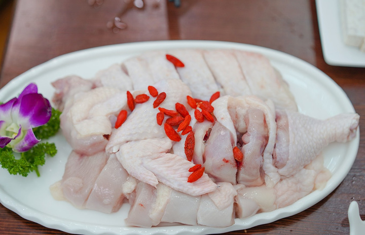 鸡肉煮好之后,记得先盛一碗鸡汤,品尝这最原始的鲜美,鸡肉一定要配上他们家秘制的沾料,还有不能煮太久,煮太久肉就老了。