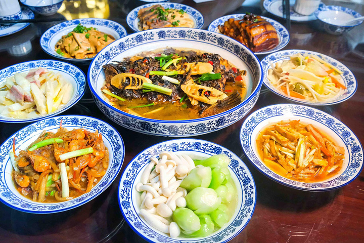 位于鲁镇景区里的一石居饭馆,就再游船码头陈半丁纪念馆旁边。这里“十碗头”虽不如大酒店里的“豪华”,但却多了一份家常感觉,尤其是特色鲁迅家的家常菜版本,有一种穿越到鲁迅小说里的古朴情怀。虽然是家常版,但同样也精致可口,饭馆里的四方桌,长条木板凳,都散发出亲切感。
