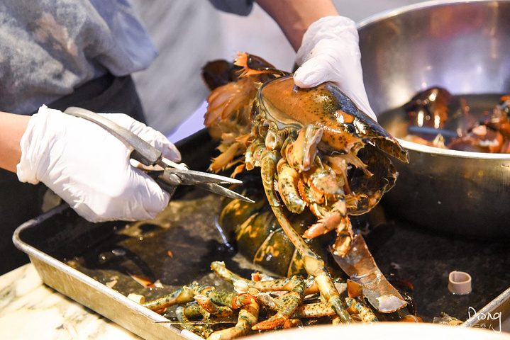 在餐厅中间,师傅定时定点切不同的海鲜,大龙虾,帝王蟹,面包蟹,所有的豪华海鲜都是不限量自取。