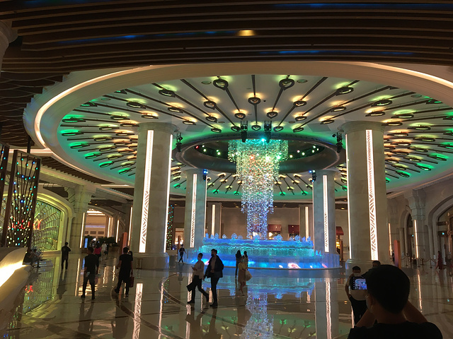因为在澳门的朋友请我们吃晚饭的地方在凼仔,我们决定今天不去半岛了。早上睡饱了起床,去把行李寄在永利,本准备去新濠吃饭的,奈何一直没看到,就导航去了朋友推荐的李家菜。就在百老汇,一个小店,但是听说名气很大,点了牛腩煲和牛什面,还是挺不错的。吃完顺便去逛了银河,又是另一个风格,钻石💎大堂值得看,另外就是赌场真的人多,这是我们看到人最多的赌场了,我们也就跟着去看了下,不过也看不懂就走了。从银河出来我们导航去了官也街,路过一个市政花园,竟然连路道都是电梯的,太豪华。花园的景致很棒,旁边就是龙环葡韵(葡式建筑博物馆)拍照很棒。然后下山就是官也街,很多当地人的小店,很热闹。我们随机在路边找了家饮品店,吃了蛋挞和奶茶、水果冰,都不错。养足精神又继续逛,把附近逛了一大圈,经过奥林匹克运动场和学校,然后在一个凉亭休息的时候发现银河竟然就在马路对面,于是一边感叹导航太坑,一边理解澳门很小的原因。以后和朋友一起吃葡国菜,朋友说这是一家纯正的葡国菜,她只有最好的朋友来的时候才约这里吃饭。花甲我很喜欢,但气泡水就有点喝不来。吃完饭我们又一起聊天返回永利,白天寄行李的时候是步行,觉得草坪很棒,晚上坐缆车🚡去,感觉喷泉也很棒,对明晚的住宿充满期待。最后,我们乘永利的车到永利半岛店,才依依不舍的分开。