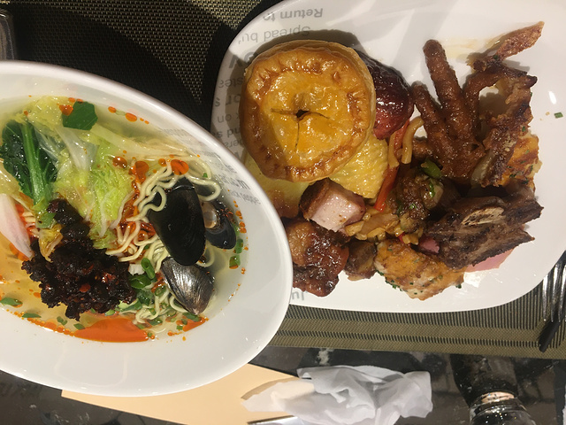 今天睡到10起床,先生去了游泳池说是冷水池,很快就冷到回来了。我们收拾了把行李寄在前台,然后就又去DFS买东西,最后去了新濠影汇星汇餐厅吃自助餐。位置就在进门的二楼,但是我们想着逛一圈再去,就不停的在问路,把整个商场都走了几遍,也发现很多区域都关门了。自助餐其实不错,但是我和先生都没能吃太多,总感觉太腻。吃完了中饭,我们取了行李去美高梅坐车到半岛的美高梅,然后跟着导航去酒店。一路上不停的爬坡,到了酒店已经累死了(晚上才发现是导航坑了我们,另一条路又近又平坦),还一直在担心这个酒店那么偏,会不会很差。结果到了酒店,发现很棒,老牌的五星酒店,设备设施都不错,只不过稍微旧点,对于节假日一百多的价格真的性价比超级高了。在酒店稍事休息后,我们就出发去东望洋灯塔,一路上遇到很多跑步的人,小爬山的感觉,不过因为太晚了,炮台已经关门了,我们在周围逛了下就走了。离开的时候我们故意选了一条不同的路走,结果坐了两个电梯到山底才发现原来这个山那么高。我们想着去葡京看看,就一路朝新葡京标志性的建筑走,结果没走多远就发现到了我们之前住的假日酒店附近。本来吃了自助餐我们都不准备吃晚饭了,但是想起酸辣粉我们又忍不住了,又去一人吃了一碗酸辣粉,在排队的时候才体会到原来澳门人也爱辣!!吃完我们依次去了葡京、新葡京、永利澳门、美高梅半岛点。葡京老一点,人很少,感觉有点破败,新葡京人气旺很多,大堂的各种摆件很震撼,就是不知道是不是纯金,然后娱乐场种类丰富很多,人也多很多。永利澳门娱乐场和商场分别在两边,不能互穿,感觉不合理,发财树的表演去的时候刚结束,也就错过了。美高梅围着走了一圈,看了大鱼缸,因为之前看过更震撼的感觉也就一般。最后我和先生都在担心返回酒店的路太难爬,结果导航给了我们另一条路,我们一路很平坦的就回酒店了,一边庆幸,一般感叹这边的导航太坑啦
