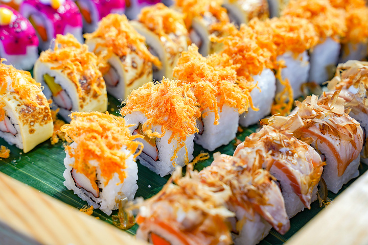 如果你是一位刺身爱好者,这里有牡丹虾刺身、甜虾刺身、三文鱼刺身、日本贝柱刺身、金枪鱼刺身等任意选择,处理得十分干净,新鲜程度一目了然。