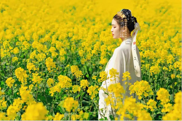 何况,它还身处花海中央。万亩油菜花海仿佛成了它的陪衬,书中美妙的诗词歌赋都落成了现实中的投影,没有人能躲得过它的魅力。