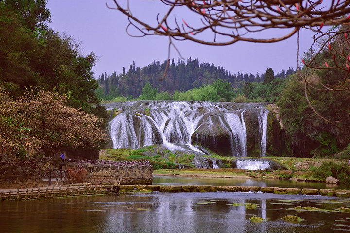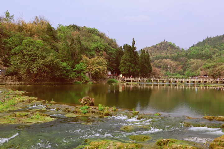 陡坡塘,最少1-2小时,路程不算远,往返路线。黄果树瀑布景区3个里面最小的一个。沿着河边走一直能看到的就是最里面的瀑布,远景一直到近景,各个角度都好看的。沿河边走会路过一座石桥,可以在石桥上拍照,把大瀑布当做背景,效果也是不错的,只是瀑布就会显得很小咯。三个景区里面唯一一个出景区不需要走很多路就能坐上观光车的地方了。