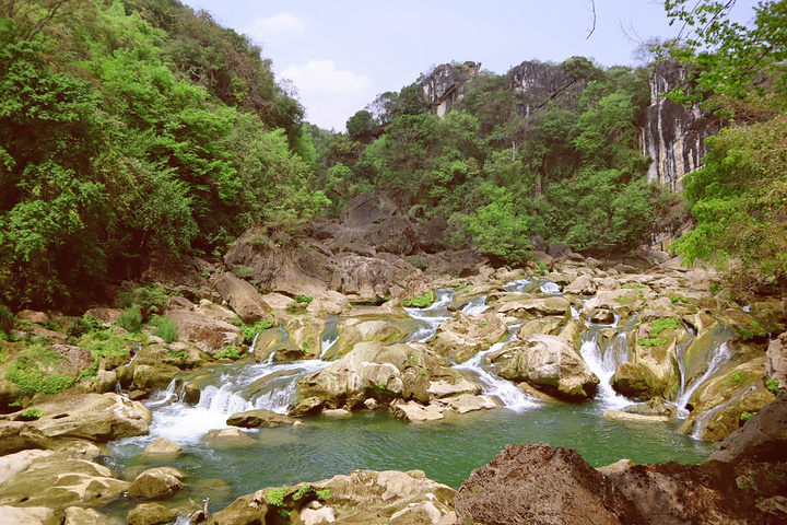 天星桥,比较大的景区,最少3-4小时,路程比较远,单行线。进门是看溶洞,数生步、天水一线、美女榕树,比较无聊。过了天星湖就开始好看了,有各种瀑布。银链坠潭瀑布最好看,快到出口的地方有个缆车10元,性价比挺高,不然要走路下山20多分钟。出景区还要走大概半个小时才能到达观光车乘车点。