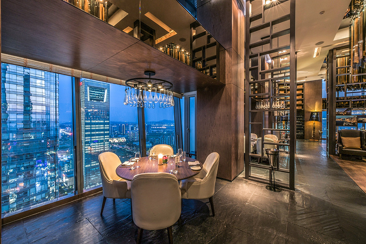 欣赏完毕餐厅的每个片区后就决定找个观景绝佳的地方来享用晚餐了,靠窗户的位置可观赏南京河西金融商贸街区的夜景,繁华无比的都市情韵让人在不经意间有了上层社会的体验感,也有着高端商务人士的既视感,山野君终于感受到了这种韵味。