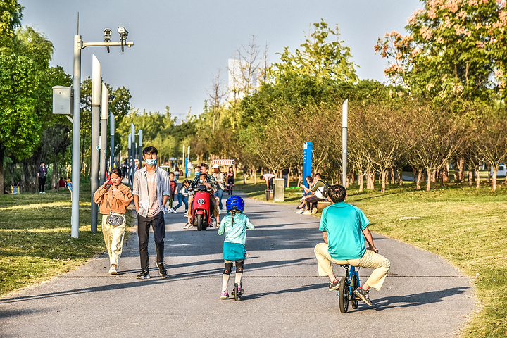 在鱼嘴湿地公园的小路上可以骑行也可以散步,可以一个人闲逛也可以成双成对漫步。周末时的鱼嘴湿地公园的玩法不受任何限制,山野君比较喜欢这个沿江的休闲公园。