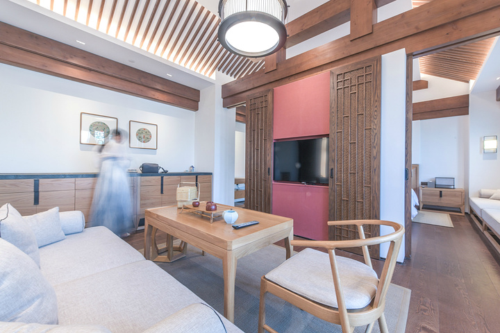 现在来看看山野君下榻的客房,卧室结合苏州园林风格与徽派建筑的设计与构造,大气无比且颇具腔调的秘民宿环境让人非常喜爱。