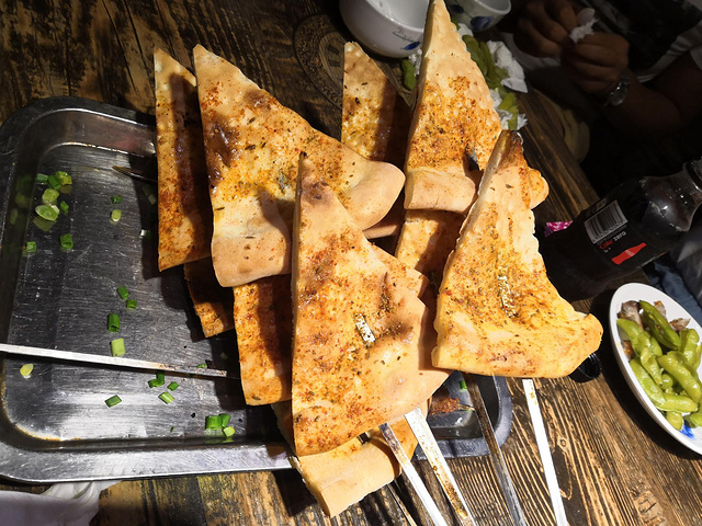 新源县和在酒店电梯认识的一对CP出来搭伙吃饭。烤馕,烤羊肉串因为太好吃没来得及拍完就吃没了。