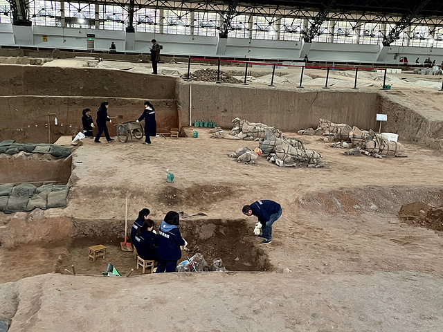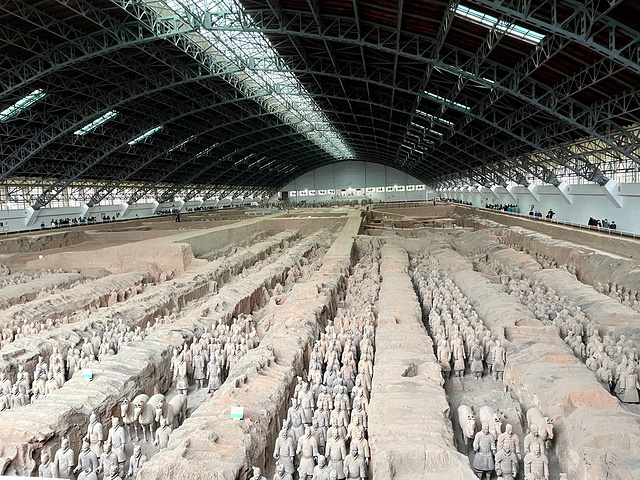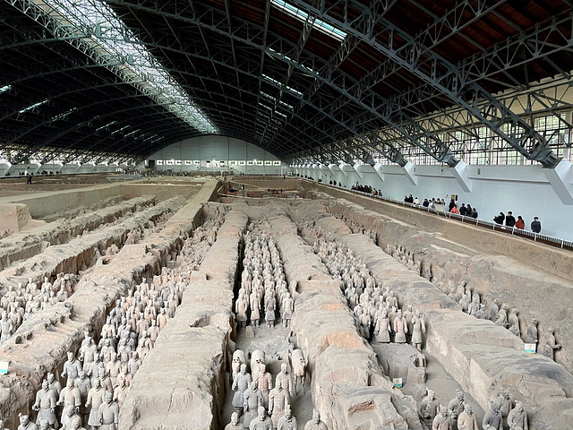 据说来西安旅游,有"六看"👀,即兵马俑、华清宫、钟楼、城墙、大雁塔、舞剧《长恨歌》。🚕华清宫和兵马俑是一条线游玩,大部分人会选择1⃣️上午华清宫,2⃣️下午兵马俑,3⃣️晚上看《长恨歌》,临潼和西安市区有⏳50分钟车程,适合报个🤹♀️旅行团车接车送带导游讲解。但个人对华清宫不大感兴趣而且想睡个懒觉🥱就放弃了这个景点,不参观华清宫的话基本就只能自由行了。😴上午睡个懒觉,中午起来定个顺风车送去🚗兵马俑景区,在美图上购买的门票🎫120元包含人工讲解,所以自由行很划算哦,预足⏰4小时在兵马俑参观,讲解员会很认真的讲兵马俑和当地的风俗故事,🎤讲解很精彩!讲解结束后,还可以自己再去逛一下博物馆,能了解到很多兵马俑的制作📚工艺和知识,在基础陈列馆观看的2辆铜车马🐎,看完就觉得以前在博物馆看到的青铜器🏺都不算什么了,兵马俑和铜车马都很令人震撼😱。兵马俑只是秦始皇陵的万分之三,⏳等到100年后,🙌秦始皇陵开封的那一天又该有多少稀世宝藏要问世呀!
