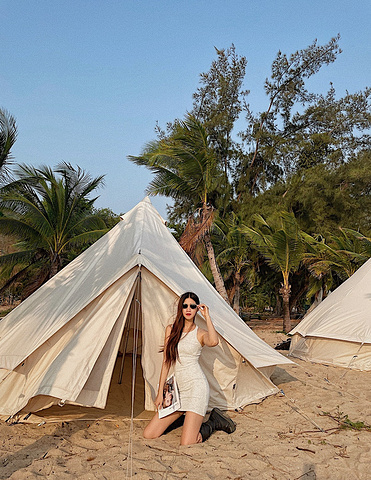 这个露营地就在天涯海角景区里,和朋友一起预定了这里的露营体验,感受一下原始森林般的宁静,超级适合辣妹拍照,狂野雨林的感觉