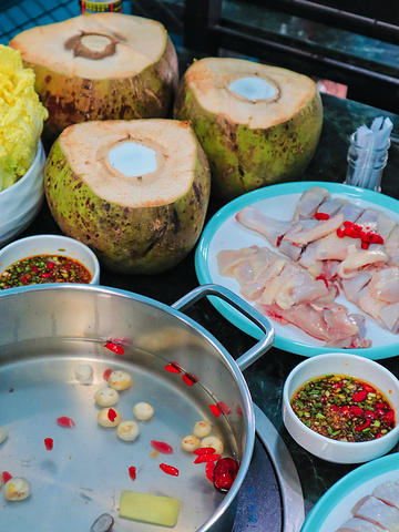 这道菜品应该算是店里的招牌了,来店就必须点的。使用新鲜现切的椰肉搭配新鲜椰子汁,放上一些当地特色的香料,煮出来的菜品很香甜,非常好吃爽口,这个味道真的很正宗,区别去我在其他城市吃到的椰子鸡火锅,真的是清盘行动的开始~
