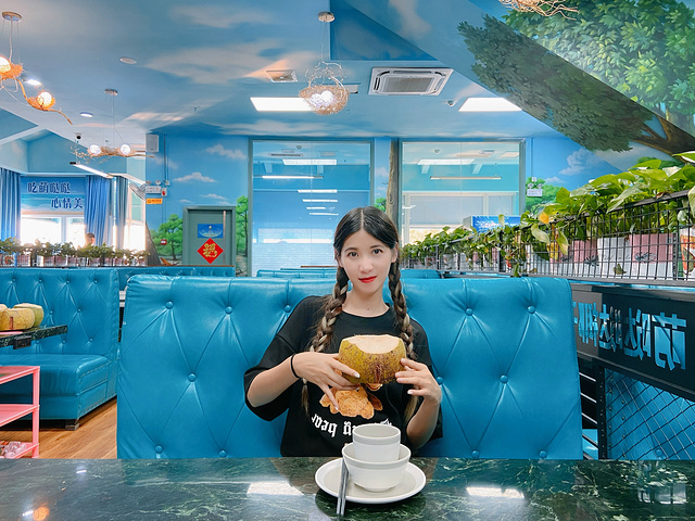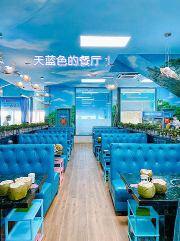 距离机场最近的是三亚湾,来海南的第一站,自然是选择海南正宗椰子鸡品尝了,当天天气真的是太好了,下了飞机已经是中午时分,赶紧滴滴来到了这家离三亚机场不远的椰子鸡餐厅,种草了很久,终于打卡了,浅蓝色主题的餐厅,让人感觉很夏天,光是环境的颜值,就已经让旅途的驱车劳顿放松了不少