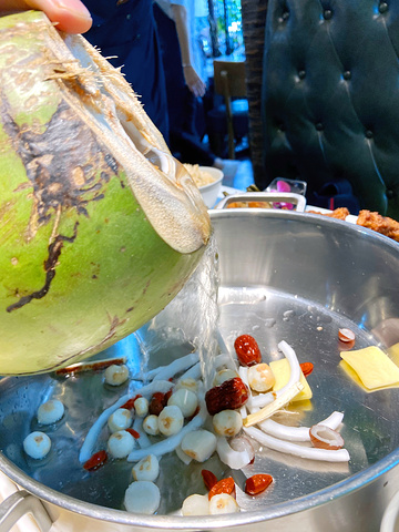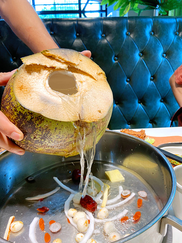 新鲜椰肉搭配椰子汁,放入的菜品煮出来的都是椰香味的,很清甜爽口呀~