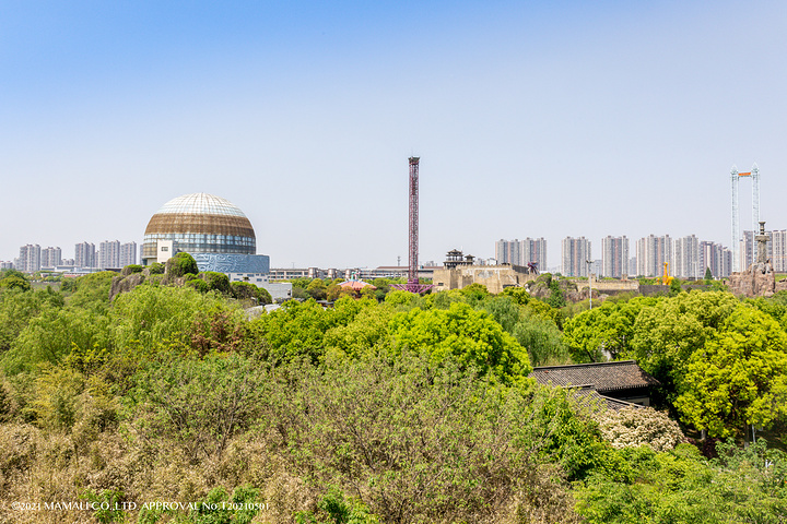 整个“孙武点将台”由高55米的空中飞行岛构成,一次性可容纳80人,而且可以公转、自转360度,其高度与臂长挑战国内乐园之极限,游客能够从高空领略淹城遗址三城三河全貌。