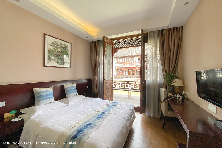 这次住在距离景区很近的水岸春秋酒店。临水而建的小房子,开门就是清澈的河水,感觉特别好。