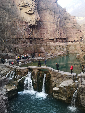 云台山是焦作的一张名片,红石峡的这个小桥就是云台山的名片红石峡的栈道些许冰挂瀑布结成冰,挂在岩石上表演节目,冰雪奇缘溜溜冰,都好这口大冰挂出来了整个冻住了,山里还是凉快滴水成冰来自游记5A云台山,4个月来了5次