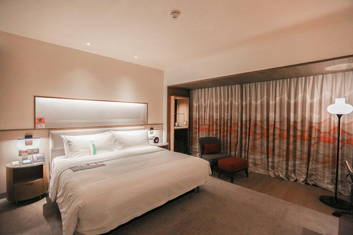 这是属于我的1112房,房间独特的暖色系,更增加了融合感,床品柔软舒适,融入了艾美独特的橙色和蓝色系,活力满满。