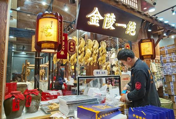 从夫子庙离开之前去了一家盐水鸭的店铺,朋友曾经在南京邮寄过盐水鸭给我,感觉味道好咸。这次闺蜜心动忍不住买了一只,吃着味道还不错,看来盐水鸭也不完全一样啊。我们打包了一只盐水鸭回到酒店,几个人分而食之了。
