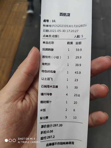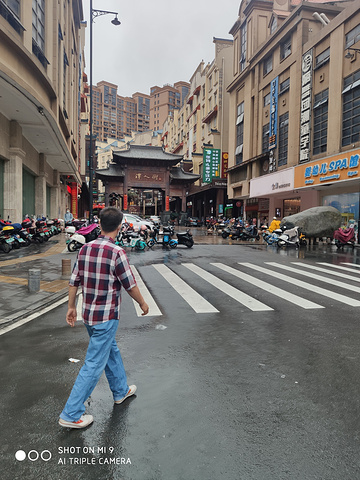 办理好入住就去觅食,由于到的时候还在下雨,老板还免费借了三把伞给我们,出去一趟就被我儿子弄坏了一把。。。人家一直说没事没事,有点尴尬。我们先在周边逛逛,走到了潭人街,牌坊和街道感觉像是商业步行街,不过里边是比较萧条的,很多商家也没开门,就街口那里有几家在招揽顾客。然后就去了附近点评上评价比较好的一家叫做蹄髈破店,这家是连锁店,可能吃不到那么正宗的福州菜,不过味道应该是不差的。点了招牌蹄髈、小份荔枝肉、南煎肝、特色纸包骨、让土豆飞、福州鸡卷4个、石锅海米豆腐、一罐椰汁、两人份米饭,点评上可以买100-5的券,最后花费287.2。招牌蹄髈我个人感觉有点肥,味道中规中矩,荔枝肉不错,有点像咕咾肉那种,里面是加过了油的土豆块的,很好吃,南煎肝强烈推荐,肝是大火过油的,料汁味道也不错,纸包骨,太硬了,牙口不好的就不要尝试了,味道还算可以,让土豆飞其实就是干锅土豆片,土豆片也是先过了油,火大油大,味道不错,福州鸡卷我有点吃不惯,感觉味道有点怪,有点腻,石锅海米豆腐味道不错,海米的味道挺重的,所以我儿子不吃。。。这边的米饭都是按人份计算的,一个人吃N碗也是收一份的钱。