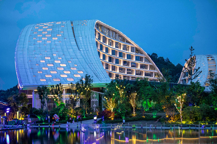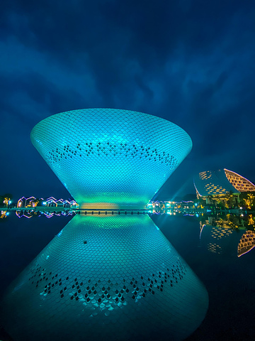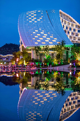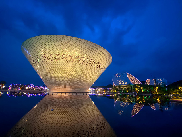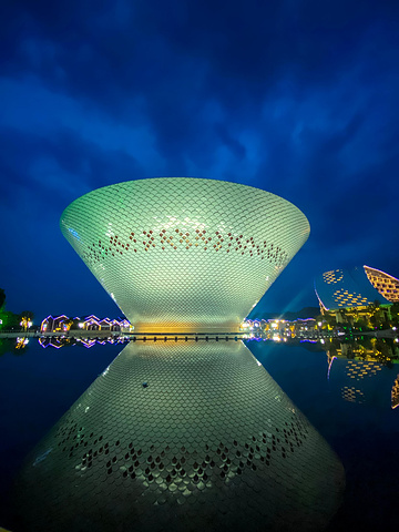按照传统的风水理论,水能生财,湖能聚财都离不开水。这样大的一只碗倒影在水面上,也许想要表达的就是将景德镇传统的陶瓷文化更加的发扬光大吧,整个大碗的色彩是在不断的变化的,呈现出一种梦幻般的效果。
