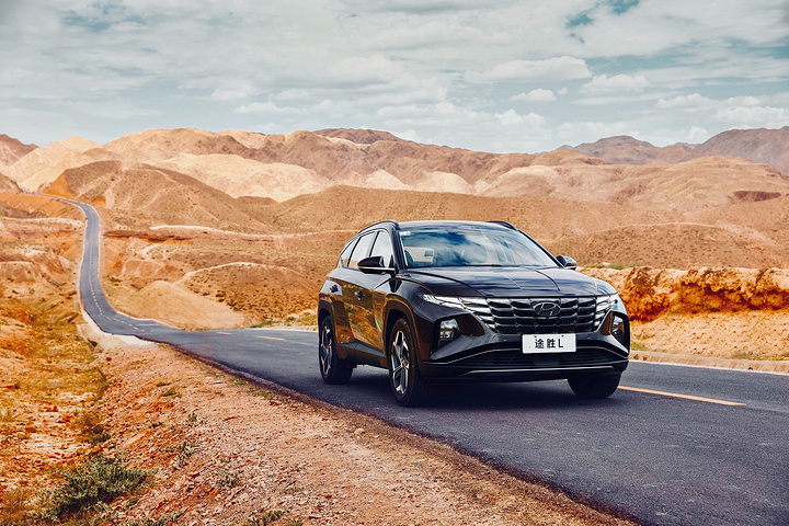 中途还经过了一段典型的黄土高原路段。放眼望去,只有黄土堆积的山丘、清白的云絮和沁心的蓝天。在这样旷远的景致下,很容易让人通透,觉得天地高远,没有什么不可能。忍不住下车拍照。这里给大家一个拍照小tips:如果觉得前景有些许单调,可以试着借用一些身边的道具, 比如 车子。看上面这张,渺远的高原风景加上第五代途胜L参数锋利的腰部线条,刀锋般锐利的大轮毂,自然和科技碰撞出的张力,让整个照片瞬间高级不少。