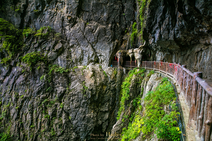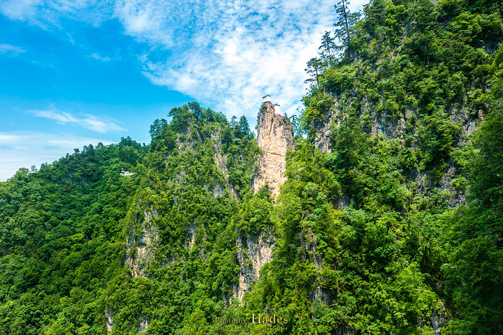 下了金顶,朝着摩月楼方向走,沿途景色变化极快。途中不仅有悬崖栈道,还有太岁洞等景观。这条长99米的洞穴通道就是太岁洞,洞内有60位太岁大将的神位。洞外阳光暴晒,洞内却凉风劲劲。刚刚爬金顶时的汗热,到了这里瞬间就降了温度,舒服的都不想出去。