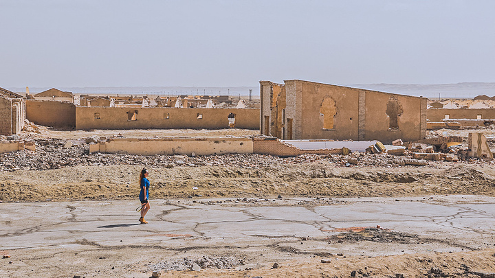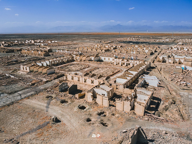 离冷湖镇不到10公里左右,到达冷湖石油基地,这是一个废弃的小镇,