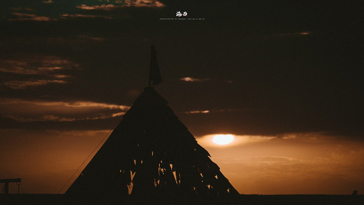 太阳慢慢地失去了轮廓,一切都那样迅疾,甚至不留瞬间的余裕,变成一弯金梳,一粒光点,终于落入地下,落日尚有余晖,雅丹失去了蜜糖色,转为深深的印记。