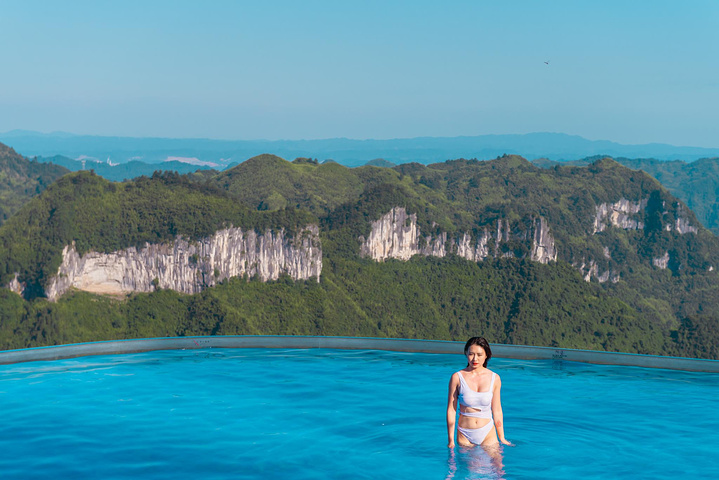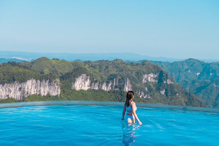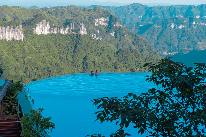 在仙居最高处是一个颇大的无边际恒温泳池,同行妹纸换了泳衣欢快的游了几圈,然后听风看矮寨大桥,惬意得舍不得离开。