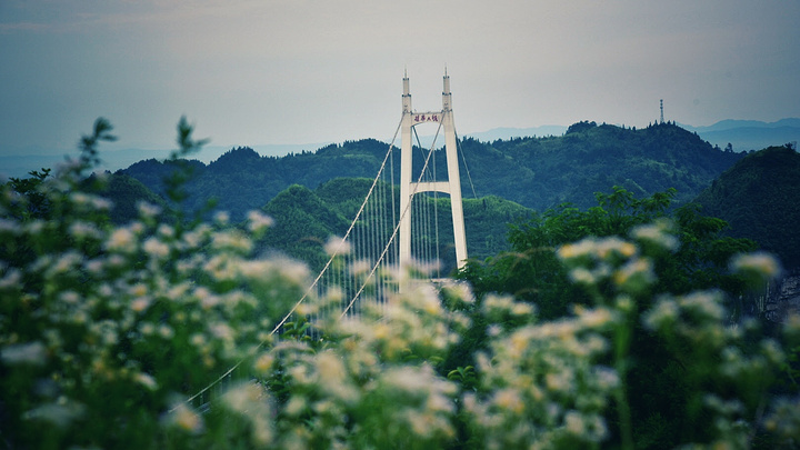 仙居里树荫多,大桥在绿叶的摆动下若隐若现,如果想要看清大桥的全貌,泳池方向是一个不错的选择,遮挡物相对少一些,而且还有一大片白色的小野花花海,挺漂亮的。