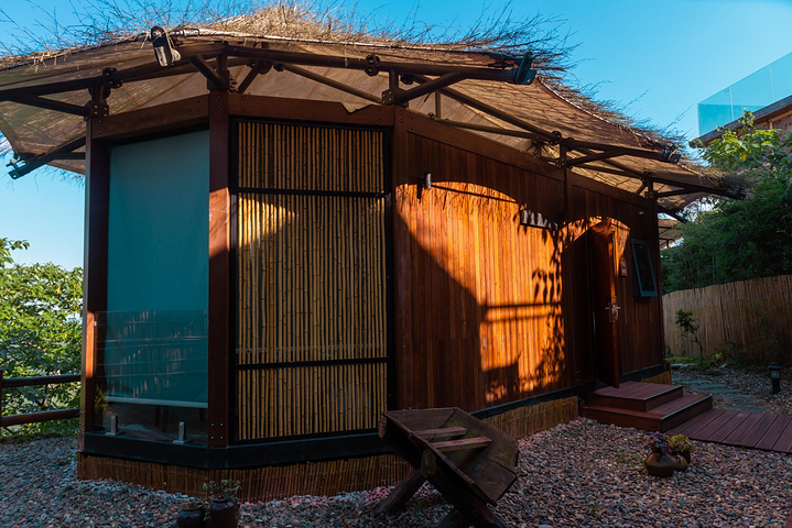 推开小院子的木门,一座精巧的小木屋出现在眼前,看,就是这一座。进得门来,才发现看起来小巧的木屋其实不小,里面配备了茶室,机麻,投影仪和浴缸,真是棒棒哒。